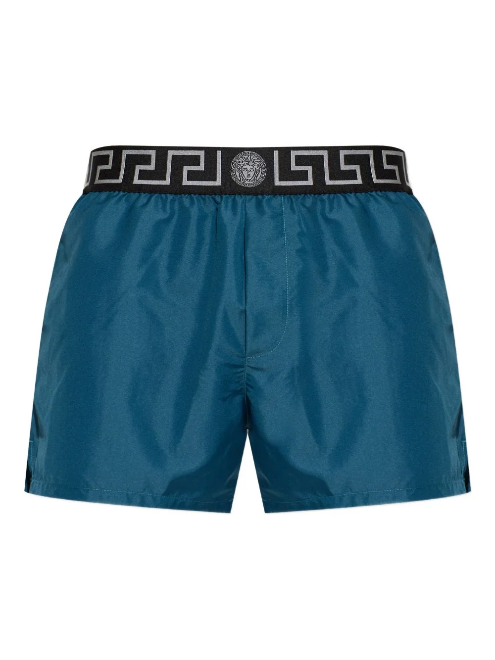 greca-detail swim shorts Highlights - Teal blue - Greca border - Elasticated waistband - Be mindful to try on swimwear over your own garments. Made in Italy Composition Polyester 100% Washing instructions Read Manufacturer Guidelines