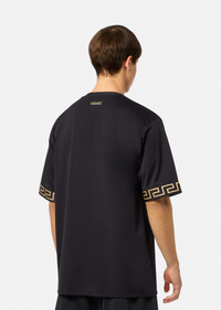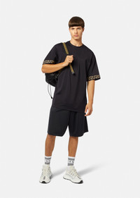 DETAILS A slightly oversized style, this gym top is embellished with Greca accents on the sleeves in a nod to brand DNA. Pair with matching gym shorts. - Logo - Greca detail on sleeves - Outer composition: 78% Nylon 22% Elastane - Trim: 82% Polyester 9% Elastane 9% Nylon - Fabric made using GRS-certified recycled polyester - Certified recycled material made from ECONYL® regenerated nylon Item: 1004079-A232185_A80G SIZE & FIT - The model is 6'1" tall and wears size 3 IT