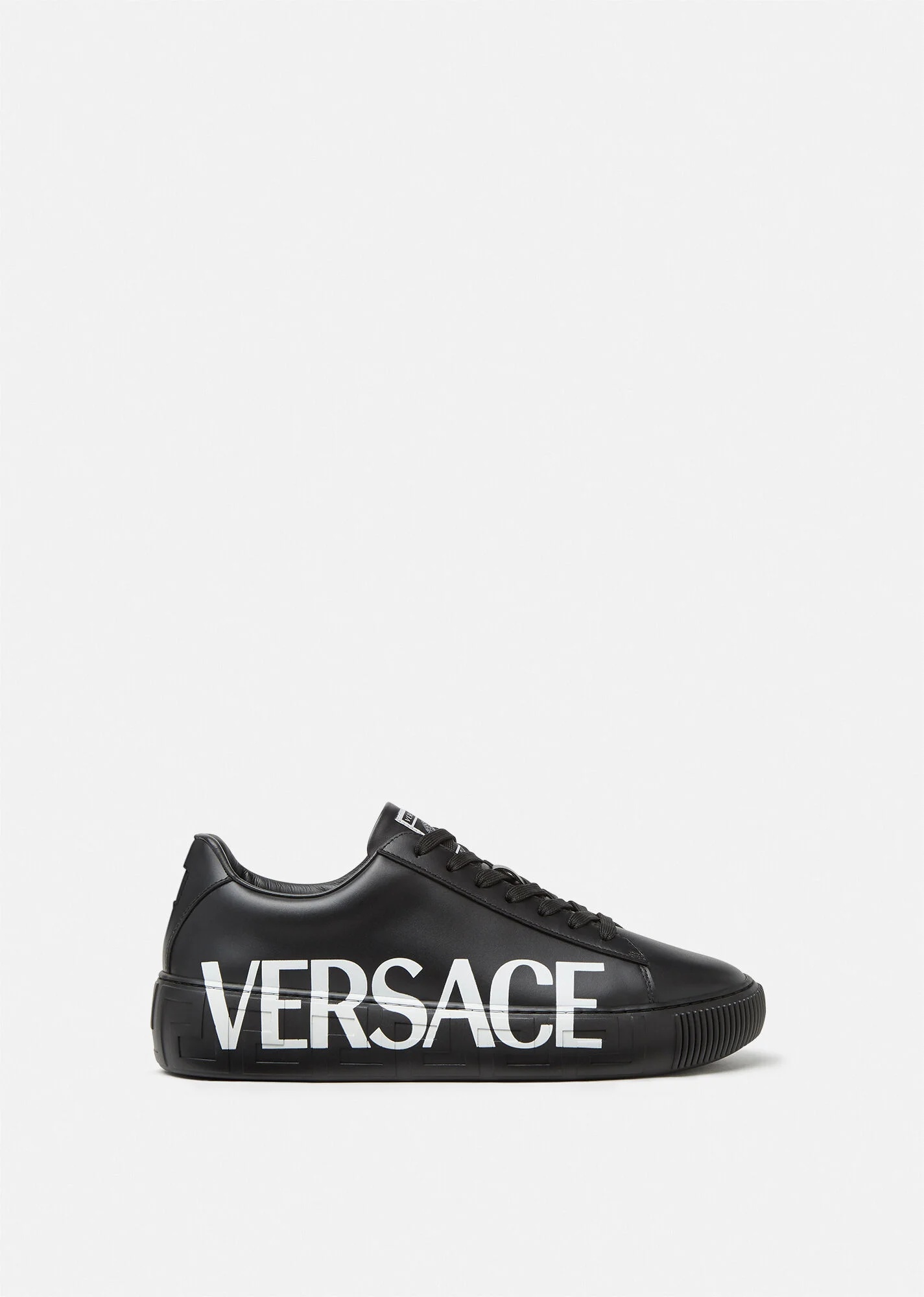 Versace's latest sneaker silhouette, Greca is characterized by understated, clean lines and the graphic Greca pattern on the midsole. The supple leather design features a lateral logo, while the outsole hides a Medusa on the heel. DETAILS & CARE - Logo - Low top - Lace up - Logo patch on tongue - Logo on heel - Greca pattern midsole - Medusa on outsole - Outer fabric: 100% Leather - Insole: 100% Leather - Sole: 100% Rubber - Made in Italy SIZE & FIT - All sizes fit Italian standards - Fits true to size, take your normal size