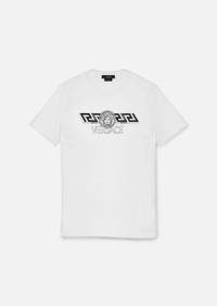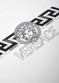 A classic crew neck t-shirt featuring the Greca print, Medusa and Versace logo to the front. DETAILS & CARE - Greca and Medusa - Logo - Crew neck - Outer fabric: 100% Cotton - Trim: 100% Cotton - Cool iron on reverse with damp cloth on top - Do not bleach - Do not dry clean - Do not tumble dry - Machine wash cold (delicate) - Wash inside out SIZE & FIT - All sizes fit Italian standards - The Model is 1,86 m and wears a size M