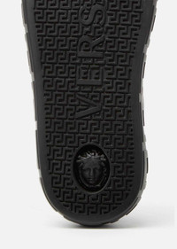 In a nod to the fashion show, these sneakers are emblazoned with a Medusa Tag motif. Inspired by graffiti, the design celebrates the brand's sense of humor and tongue-in-cheek approach. As Versace's understated sneaker silhouette, Greca is characterized by clean lines and the graphic Greca pattern on the midsole. A classic low top, lace up design, the sneakers hide a Medusa on the outsole. DETAILS & CARE - Medusa Tag - Upper: 100% Calf leather - Insole: 100% Calf leather - Sole: 100% Rubber - Trim: 100% Calf leather - Made in Italy SIZE & FIT - All sizes fit Italian standards - Fits true to size, take your normal size