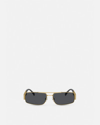 DETAILS A rectangular shape, these sunglasses have metal frames and feature a metal Greca openwork at the temples. - Greca hardware - Frame color: Gold-tone - Temple color: Gold-tone - Lens colour: Light brown / Mirror dark gold-tone - Frame material: Metal - Temple material: Metal Item: O2257-O10028760_RTU_TU_ONUL__ SIZE & FIT - Lens width: 60 mm - Bridge: 16 mm - Temple: 145 mm