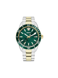 Greca Urban 43mm Highlights - 43mm - Green - Stainless steel - Round face - Guilloche dial - Geometric dial - Baton hands - Date indication - Medusa head motif - Quartz movement - Rotating bezel - Screw-down crown - Adjustable link bracelet - Folding clasp - This item comes with a standard one-year warranty from the boutique. Imported Composition stainless steel 100% SIZE & FIT Measurement DIAMETER 1.69 in(4.3 cm)