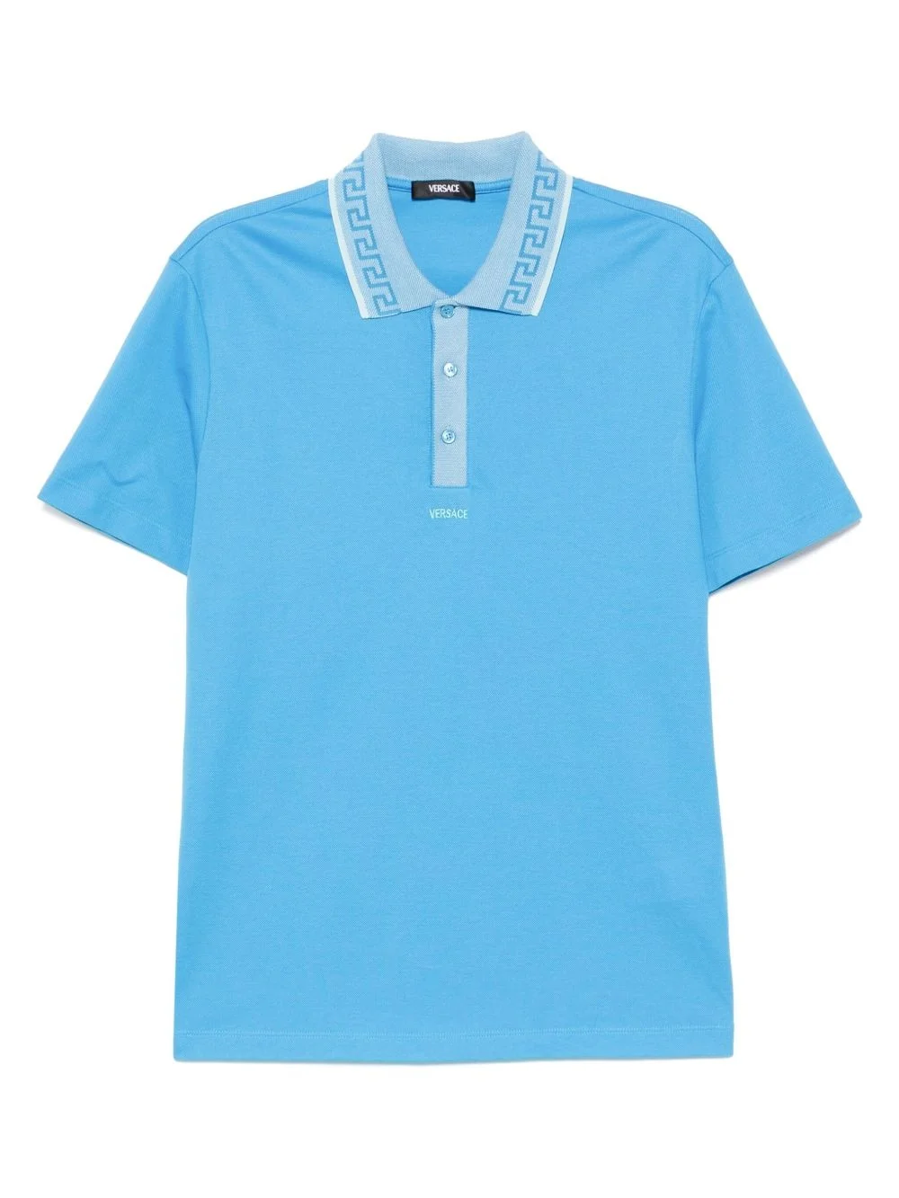 Grecca polo shirt Highlights - Light blue - Front button placket - Short sleeves - Straight hem Imported Composition Viscose 100% SIZE & FIT Model measurements Height 6 ft 2 in(1.87 m) Bust/Chest 33.07 in(84 cm) Hips 35.43 in(90 cm) Waist 26.77 in(68 cm) FittingInformation Designed for a regular fit, this polo shirt offers a comfortable loose fit throughout the body Made from a midweight non-stretch fabric