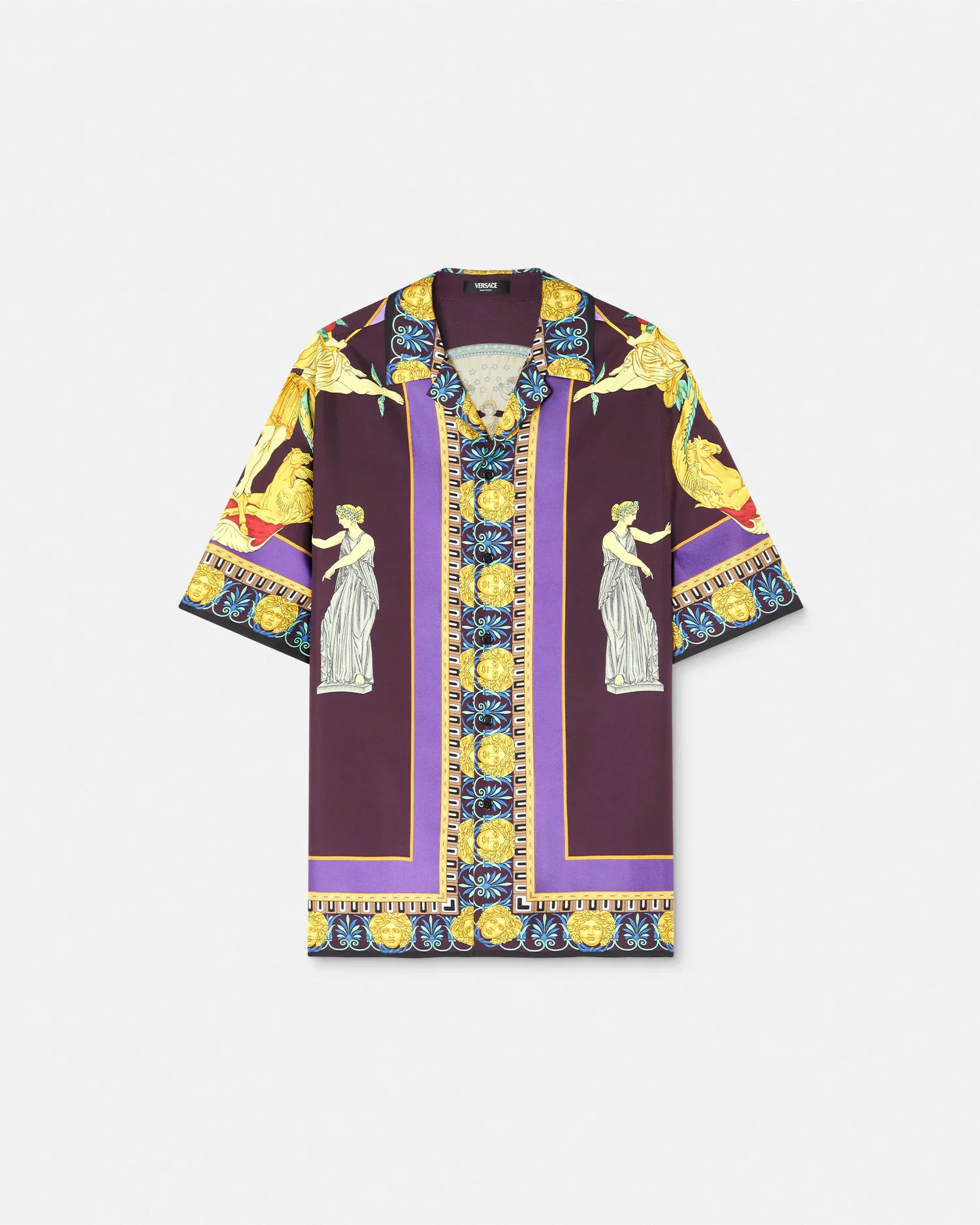 This short-sleeved shirt is made from silk twill and features an Hall of Statues print, a reinterpretation of an archival print depicting Grecian statues, deities and the House's signature Medusa. - Hall of Statues print - Short sleeves - Notched collar - Front button closure - Outer Composition: 100% Silk Item: 1003926-1A15437_5L560