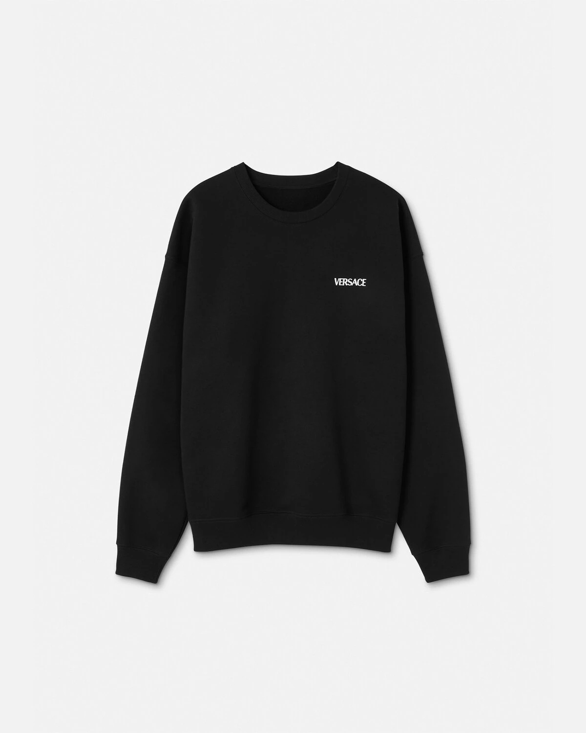 DETAILS This droppedshoulder sweatshirt is made from cotton jersey with a soft brushed fleece lining an embroidered Versace logo at the chest and a graphic Versace Hills print at the back - Versace Hills print - Long sleeves - Crewneck - Elastic hem and cuffs - Outer composition: 100% Cotton - Embroidery: 100% Viscose - Trim: 100% Cotton Item: 1012929-1A09339_2B510 SIZE & FIT - The model is 6'2" tall and wears size 48 - All sizes fit Italian standards