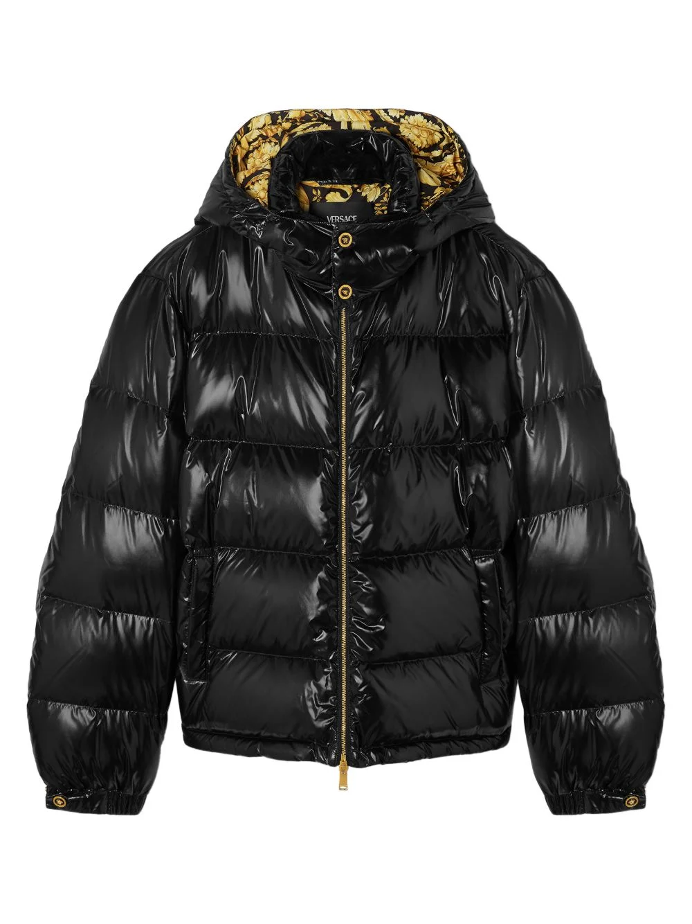 hooded puffer jacket Highlights - Black - Gold-tone hardware - Zip fastening - Side pockets Imported Composition Outer: Polyamide 100% Lining: Polyester 100%, Cotton 100%, Goose Down 80%, Goose Feather 20% Washing instructions Read Manufacturer Guidelines