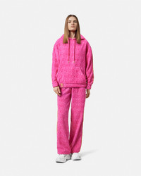 DETAILS These terrytowelling flared sweatpants feature a tonal Versace Allover pattern detailed with I Baroque side piping trims - Versace Allover motif - I Baroque print - Elastic drawstring waistband - Side pockets - Outer composition: 100% Cotton - Lining: 100% Cotton - Trim: 100% Cotton Item: 1020141-1A14584_Z4584 SIZE & FIT - The female model is 5'10" / 1.79 m tall and wears size XS. The male model is 6'3" / 1.91 m tall and wears size M.