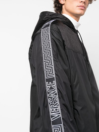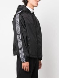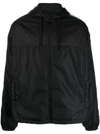 jacquard-logo hooded jacket Highlights - Black/white - Cotton lining - Lightweight construction - Jacquard logo motif - Logo-tape detailing - Front zip fastening - Long sleeves - Elasticated cuffs - Drawstring hem - Two button-fastening pockets - Drawstring hood - Internal logo patch - Internal slip pocket Made in Italy Composition Lining: Polyester 100%, Cotton 100% Outer: Polyamide 100% SIZE & FIT Model measurements Height 6 ft 2 in(1.88 m) Bust/Chest 37.79 in(96 cm) Hips 35.82 in(91 cm) Waist 29.92 in(76 cm) FittingInformation Designed for a boxy fit, intended for a loose fit throughout The adjustable drawstring means that you can adjust this piece’s fit to suit your comfort and preference Made from a lightweight non-stretch fabric This piece fits true to size – take your usual size Washing instructions Machine Wash