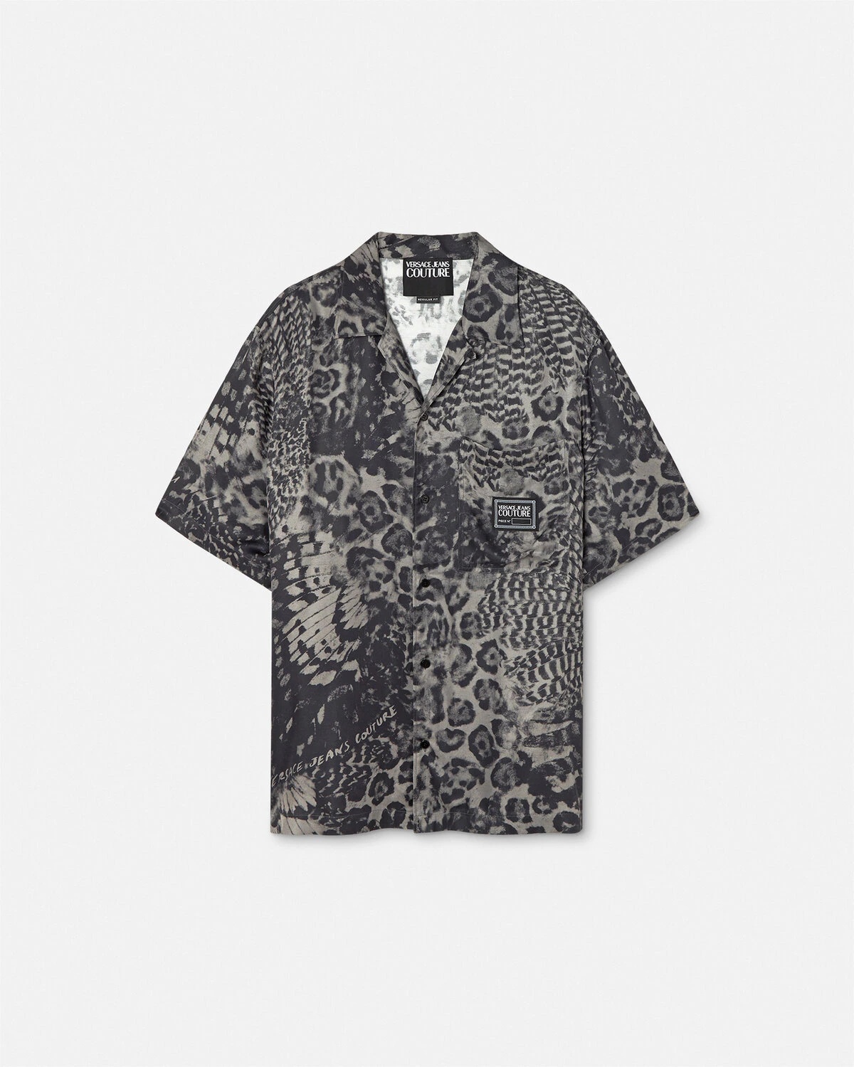 DETAILS This fluid twill short-sleeved shirt features an Animalier print, a relaxed notched collar and a Piece Number logo label on the chest pocket. - Animalier print - Piece Number logo - Short sleeves - Notched collar - Front button closure - Chest patch pocket - Outer composition: 100% Viscose Item: E76GAL2B0-ENS396_E899 SIZE & FIT - The model is 6'3" tall and wears size 48 - All sizes fit Italian standards