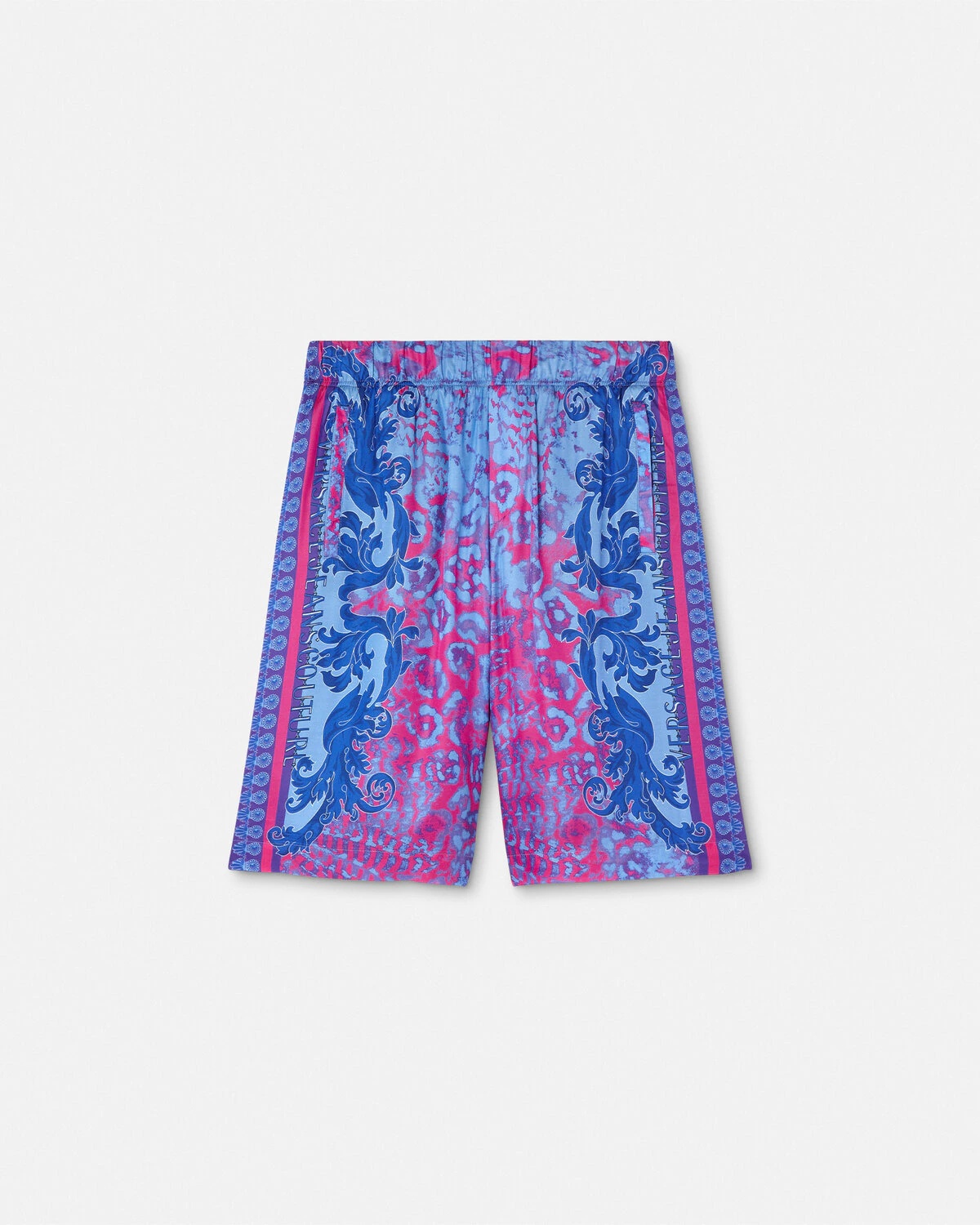 DETAILS Knee-length shorts with all-over Animalier print and Barocco motifs, featuring a breathable mesh lining and an elastic waistband. - Animalier print - Baroque motifs - Mesh lining - Side pockets - Elastic waistband - Outer composition: 100% Viscose - Lining 1: 100% Polyester - Lining 2: 100% Cotton Item: E76GAD17A-ENS429_E261 SIZE & FIT - The model is 6'3" tall and wears size 48 - All sizes fit Italian standards