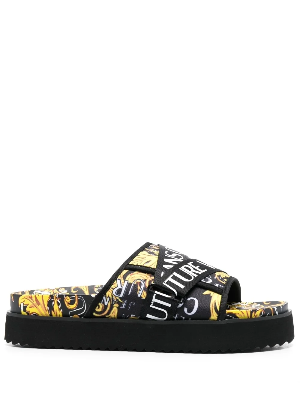 Barocco logo-print slides Highlights - Black/multicolour - Signature barocco print - All-over logo print - Open toe - Moulded footbed - Flat rubber sole - Slip-on style Imported Composition Lining: Fabric 100% Outer: Fabric 100% Sole: Rubber 100% SIZE & FIT Measurement HEEL 1.57 in(4 cm) Sole height 1.37 in(3.5 cm)