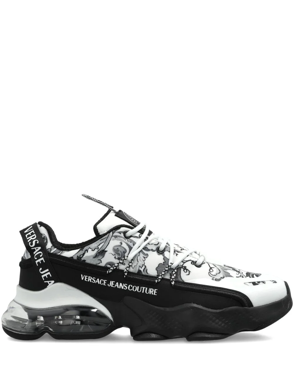 baroque-print lace-up sneakers Highlights - White - Baroque print - Lace-up fastening - Rubber sole - Branded details Imported Composition Outer: Polyester 100%, Polyurethane 100% Lining: Fabric 100%, Polyurethane 100% Sole: Rubber 100%