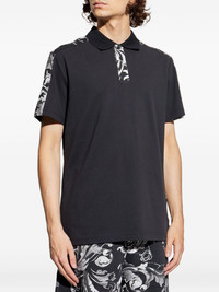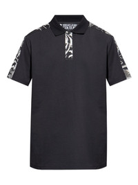 baroque-print polo shirt Highlights - Black - Short sleeves - Baroque print panel - Button fastening - Cotton Imported Composition Cotton 100%