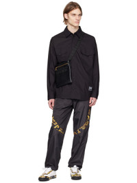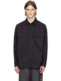 Cotton poplin shirt. · Spread collar · Press-stud closure · Flap pockets · Logo patch at front hem · Shirttail hem · Press-stud barrel cuffs · Inverted box pleat at back yoke · Logo-engraved black hardware Supplier color: Black 100% cotton. Made in Albania 231202M192013