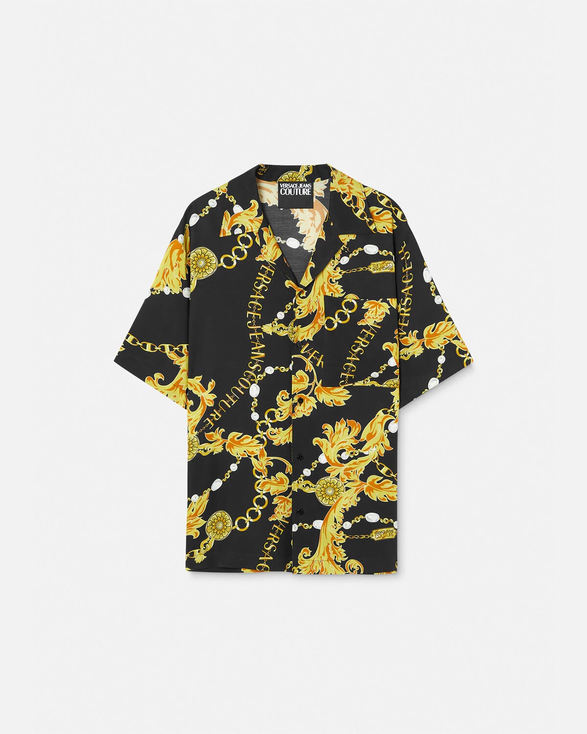 A fluid short-sleeved shirt featuring an all-over Chain Couture print with a relaxed notched collar. DETAILS & CARE - Chain Couture print - Long sleeves - Notched collar - Front button closure - Chest patch pocket - Outer composition: 100% Cotton - Do not wash - Do not bleach - Do not tumble dry - Cool iron - Delicate dry clean - Do not professional wet clean - Iron reverse side only SIZE & FIT - The model is 6'2" tall and wears size 48 - All sizes fit Italian standards
