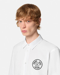 DETAILS This longsleeved cottonpoplin shirt features a rubberized chain VEmblem logo motif in a gothic lettering - V-Emblem logo motif - Long sleeves - Pointed collar - Front button closure - Buttoned cuffs - Outer composition: 100% Cotton Item: E77GALYS1-ECN002_E003 SIZE & FIT - The model is 6'2" / 1.88 m tall and wears size M IT