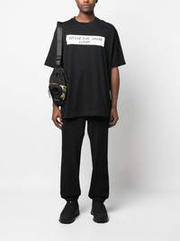 drawstring track pants black cotton blend elasticated waistband drawstring fastening two diagonal pockets to the sides elasticated cuffs Made in Italy Composition Lining: Cotton 100% Outer: Polyester 66%, Viscose 28%, Spandex/Elastane 6% SIZE & FIT Model measurements Height 6 ft 2 in(1.88 m) Bust/Chest 36.61 in(93 cm) Hips 35.82 in(91 cm) Waist 27.95 in(71 cm) FittingInformation This piece fits true to size. We recommend you get your regular size Designed to be loose over the leg with a fitted waist and hem Made with a mid-weight stretch fabric Washing instructions Machine Wash