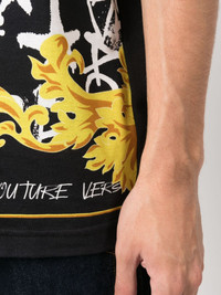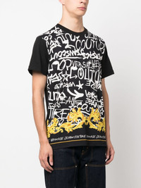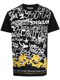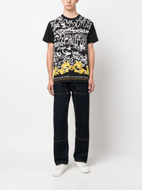 graffiti-print cotton T-shirt Highlights - Black/white/yellow gold - Cotton - Graffiti print - Logo print at the hem - Crew neck - Short sleeves - Straight hem Made in Italy Composition Cotton 100% SIZE & FIT Model measurements Height 6 ft 1 in(1.86 m) Bust/Chest 36.61 in(93 cm) Hips 37 in(94 cm) Waist 28.74 in(73 cm) Measurement CHEST 40.15 in(102 cm) SLEEVE LENGTH 7.08 in(18 cm) Shoulder Width 17.32 in(44 cm) LENGTH 26.37 in(67 cm) FittingInformation Designed for a relaxed fit, this piece allows for comfort and movement when worn Made from a midweight non-stretch fabric, this piece offers minimal elasticity when worn This piece fits true to size – take your usual size