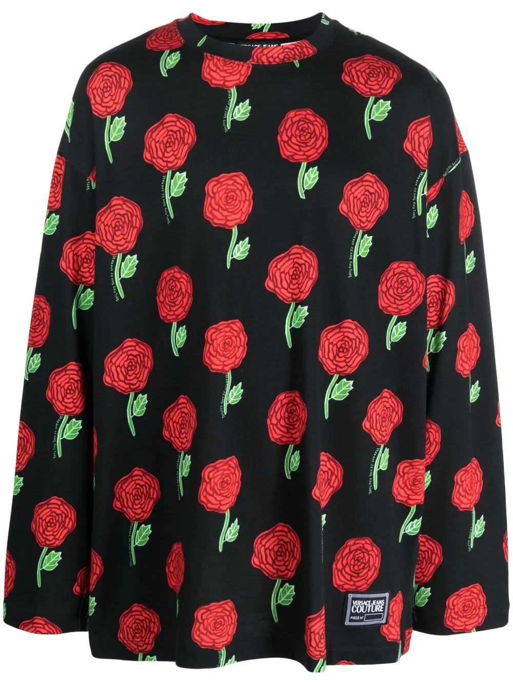 Interlock rose-print oversized T-shirt Highlights - Jet black/crimson/grass green - Cotton - All-over rose print - All-over logo print - Logo patch to the front - Crew neck - Drop shoulder - Long sleeves - Straight hem - Wide style Imported Composition Cotton 100% SIZE & FIT Model measurements Height 6 ft 0 in(1.84 m) Bust/Chest 35.82 in(91 cm) Hips 37 in(94 cm) Waist 28.34 in(72 cm) FittingInformation Designed to be unstructured, offering a loose fit throughout Made from a midweight non-stretch fabric, this piece offers minimal elasticity when worn This piece fits true to size – take your usual size Washing instructions Machine Wash