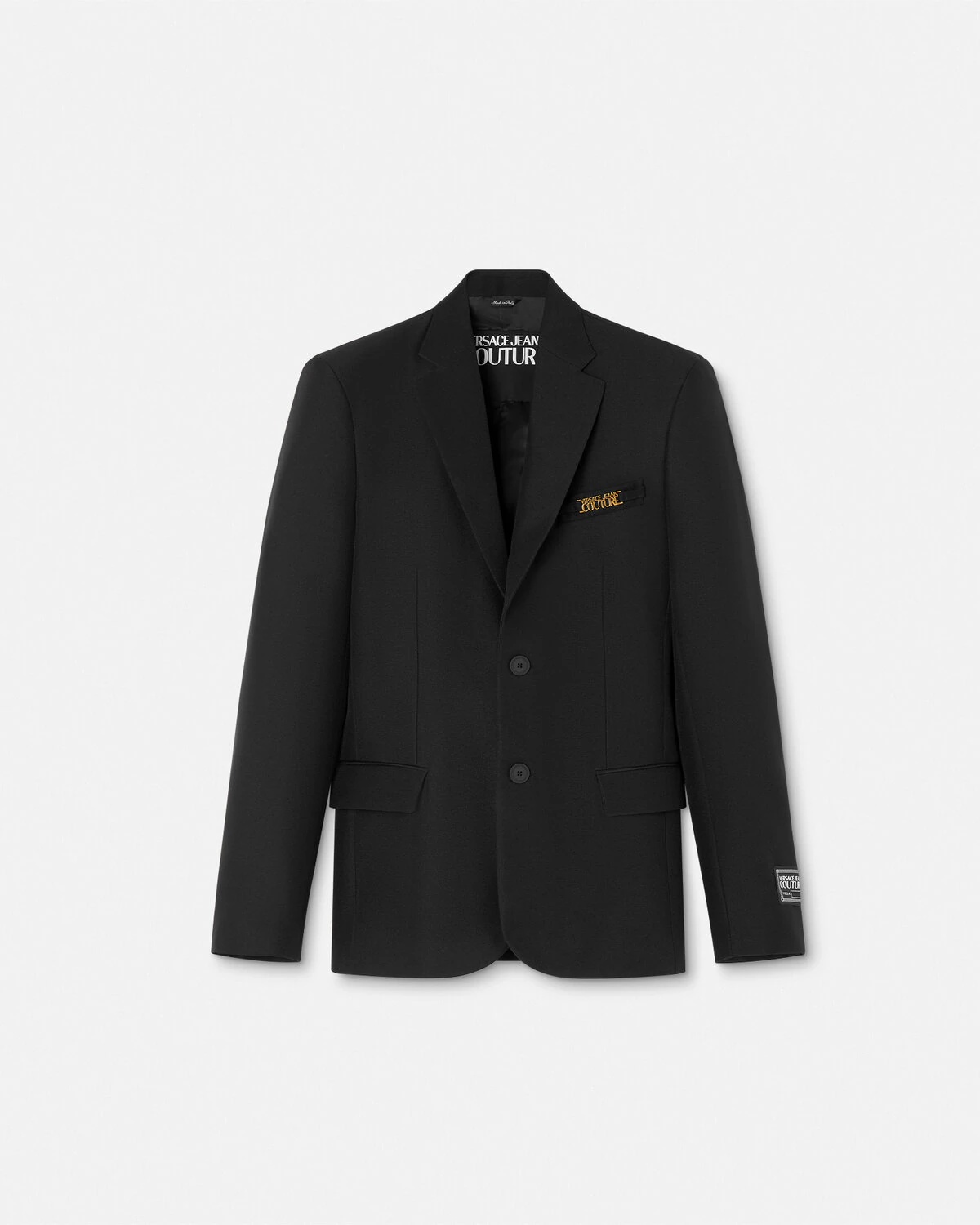 DETAILS This singlebreasted blazer is accented by the Institutional Logo hardware at the chest pocket and the Piece Number logo on one sleeve - Institutional Logo hardware - Piece Number label - Long sleeves - Peaked lapels - Front button closure - Chest welt pocket - Side flap pockets - Buttoned cuffs - Back vent - Outer composition: 100% Polyester - Lining: 60% Acetate, 40% Viscose Item: E77GAQ703-EN0357_E899 SIZE & FIT - The model is 6'2" tall and wears size 48 IT