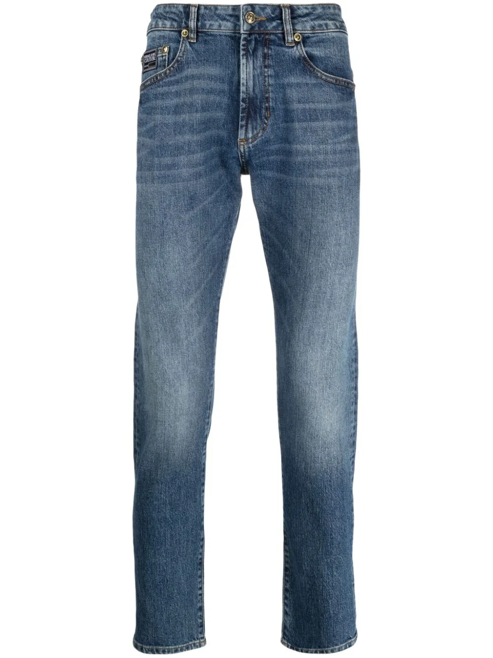 logo-applique slim-cut jeans Highlights - Ink blue - Stretch-cotton - Denim - Mid-wash - Whiskering effect - Applique logo - Rivet detailing - Slim cut - Mid-rise - Belt loops - Front button and zip fastening - Classic five pockets Imported Composition Cotton 99%, Spandex/Elastane 1% SIZE & FIT Model measurements Height 6 ft 1 in(1.86 m) Bust/Chest 37.4 in(95 cm) Hips 36.22 in(92 cm) Waist 29.52 in(75 cm) Washing instructions Machine Wash