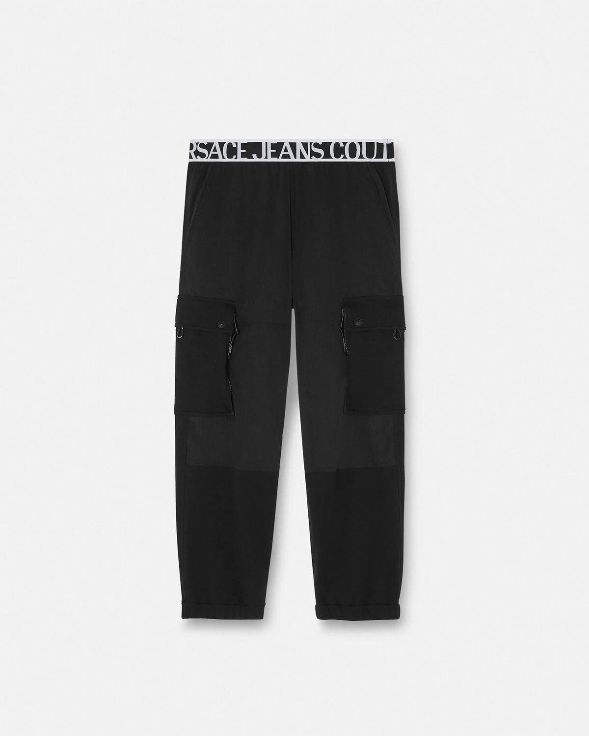 DETAILS These cargo pants features a logo elasticated waistband and crinkled nylon panels. - Logo motif - Cargo pockets - Back welt pocket - Elasticated waistband and cuffs - Outer composition 1: 100% Polyester - Outer composition 2: 100% Cotton - Lining: 100% Polyester Item: E75GAAD06-ECQD24_E899 SIZE & FIT - The model is 1,89 m tall and wears size 48 - All sizes fit Italian standards