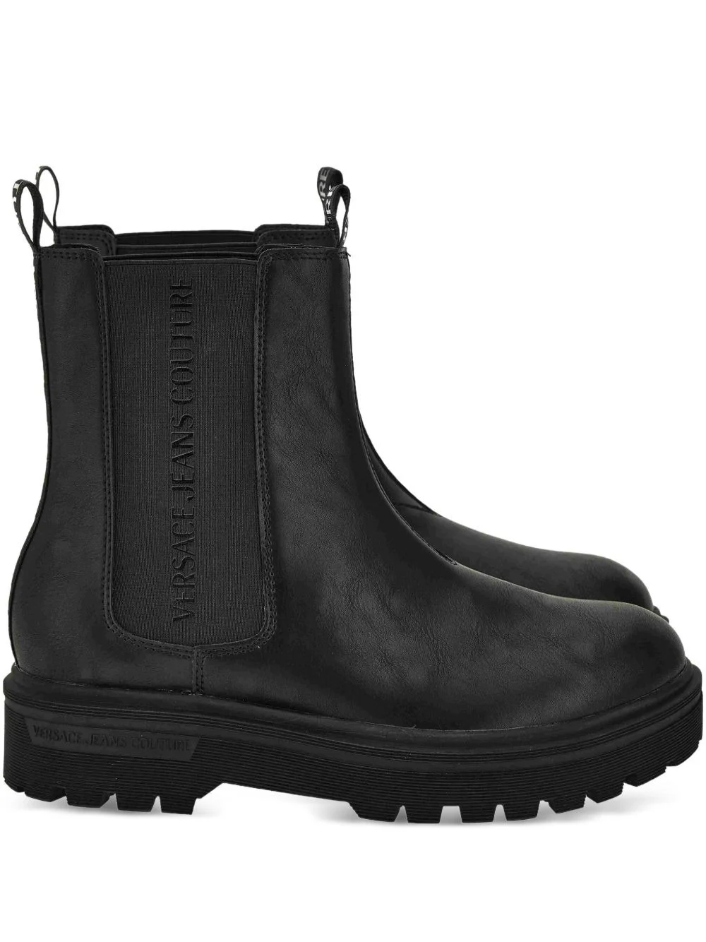 logo-detail elastic-panel boots Highlights - Black - Elastic side panel - Branded logo detail - Round toe - Flat sole - Pull-on tab Imported Composition Outer: Polyurethane 100% Lining: Polyurethane 100% Sole: Rubber 100%