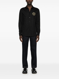 logo-embroidered cotton shirt Highlights - Black/gold-tone - Cotton - Embroidered logo at the chest - Classic collar - Front button fastening - Long sleeves - Buttoned cuffs - Curved hem Imported Composition Cotton 100% SIZE & FIT Model measurements Height 6 ft 2 in(1.87 m) Bust/Chest 36.41 in(92.5 cm) Hips 37 in(94 cm) Waist 29.52 in(75 cm) FittingInformation Designed for a regular fit, allowing for a comfortably loose fit throughout the body Made from a midweight non-stretch fabric This piece fits true to size – take your usual size