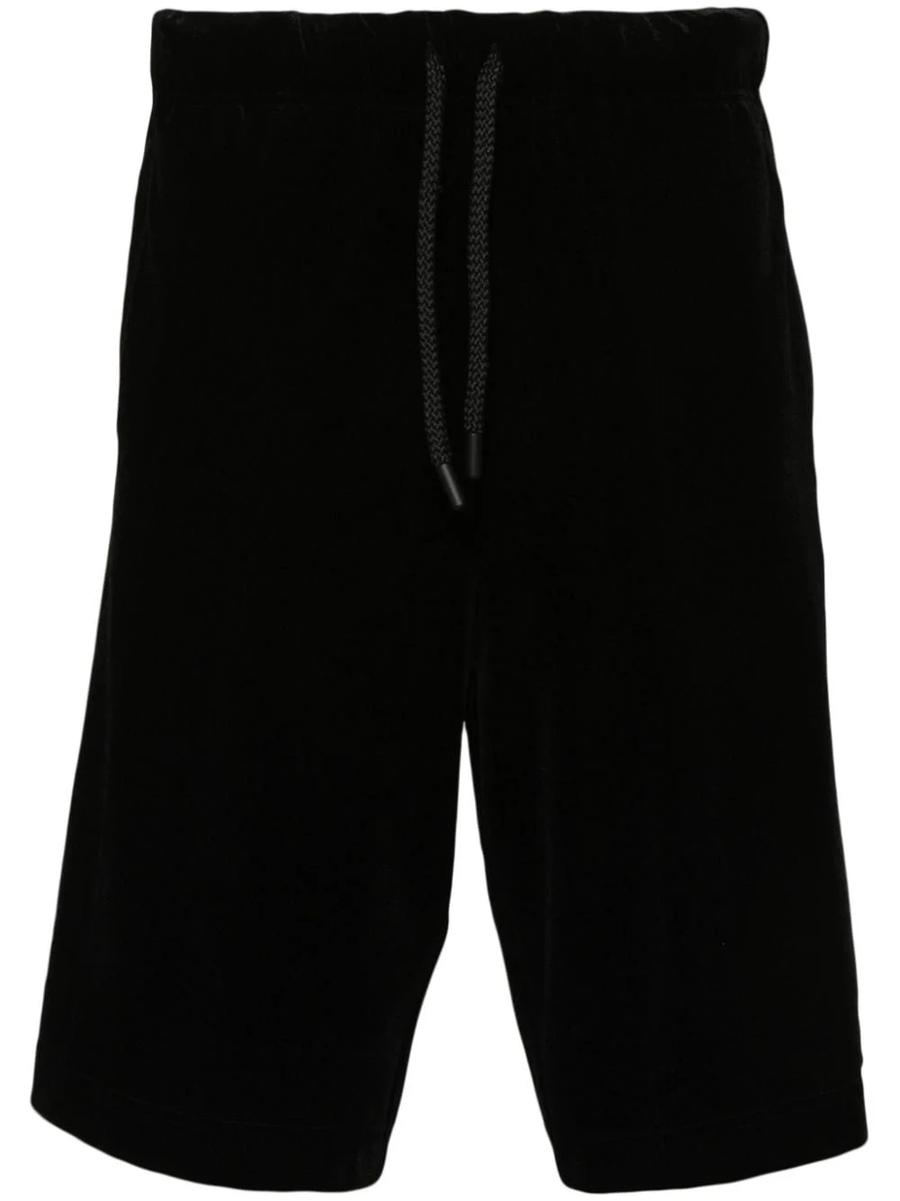 logo-patch velvet shorts Highlights - Black - Velvet - Elasticated drawstring waistband - Contrasting border - Two side slash pockets - Logo patch to the front - Straight hem Made in Italy Composition Outer: Viscose 75%, Polyamide 23%, Elastane 2% Lining: Cotton 100% SIZE & FIT Model measurements Height 6 ft 2 in(1.87 m) Bust/Chest 37 in(94 cm) Hips 33.85 in(86 cm) Waist 27.95 in(71 cm) FittingInformation Designed with a wide leg, offering a loose and roomy fit Adjust this piece’s waistband to your preference using the drawstring Made from a midweight stretch fabric, this piece offers elasticity and flexibility when worn This piece fits true to size – take your usual size