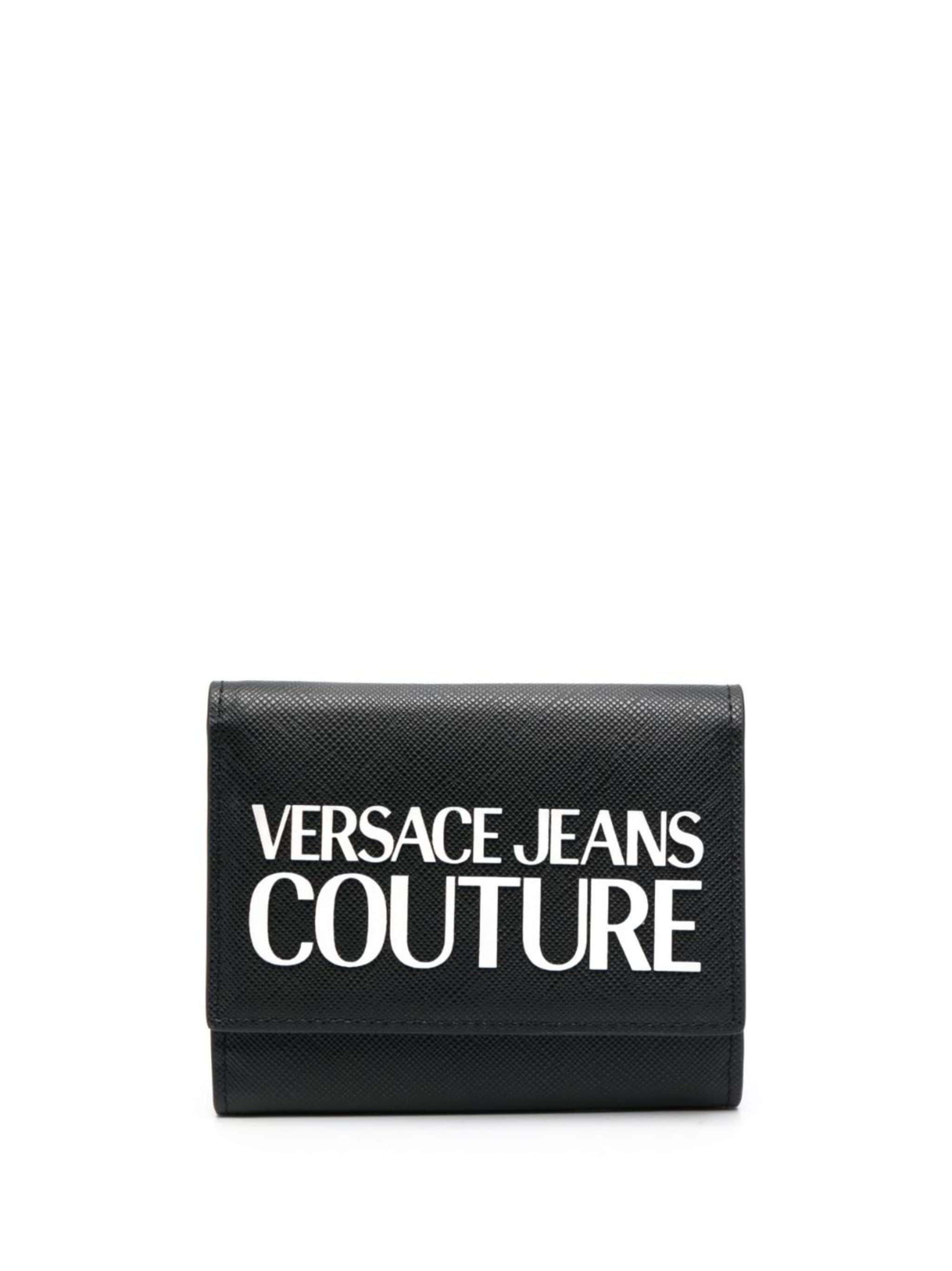 logo-plaque leather wallet from VERSACE JEANS COUTURE featuring black, leather, logo plaque, foldover top with magnetic fastening, internal card slots and main compartment. Size & Fit Model Measurements: Bust: 0cm Height: 0cm Hips: 0cm Waist: 0cm DEPTH: 2.5cm Length: 10.5cm WIDTH: 8.5cm Fabric and Care Designer Style ID: 75YA5PC7ZP111 Designer Colour: 899 BLACK Composition: Outer: Leather 100%