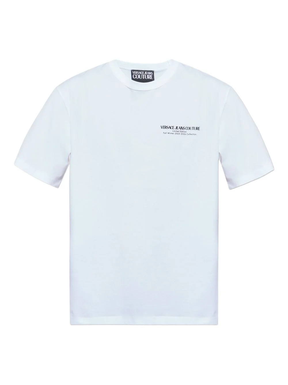 logo-print cotton T-shirt Highlights - White - Crew neck - Short sleeves - 'versace jeans couture' print - 'fall winter 2025 2026 collection' print Imported Composition Outer: Cotton 100% Washing instructions Read Manufacturer Guidelines