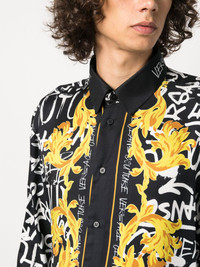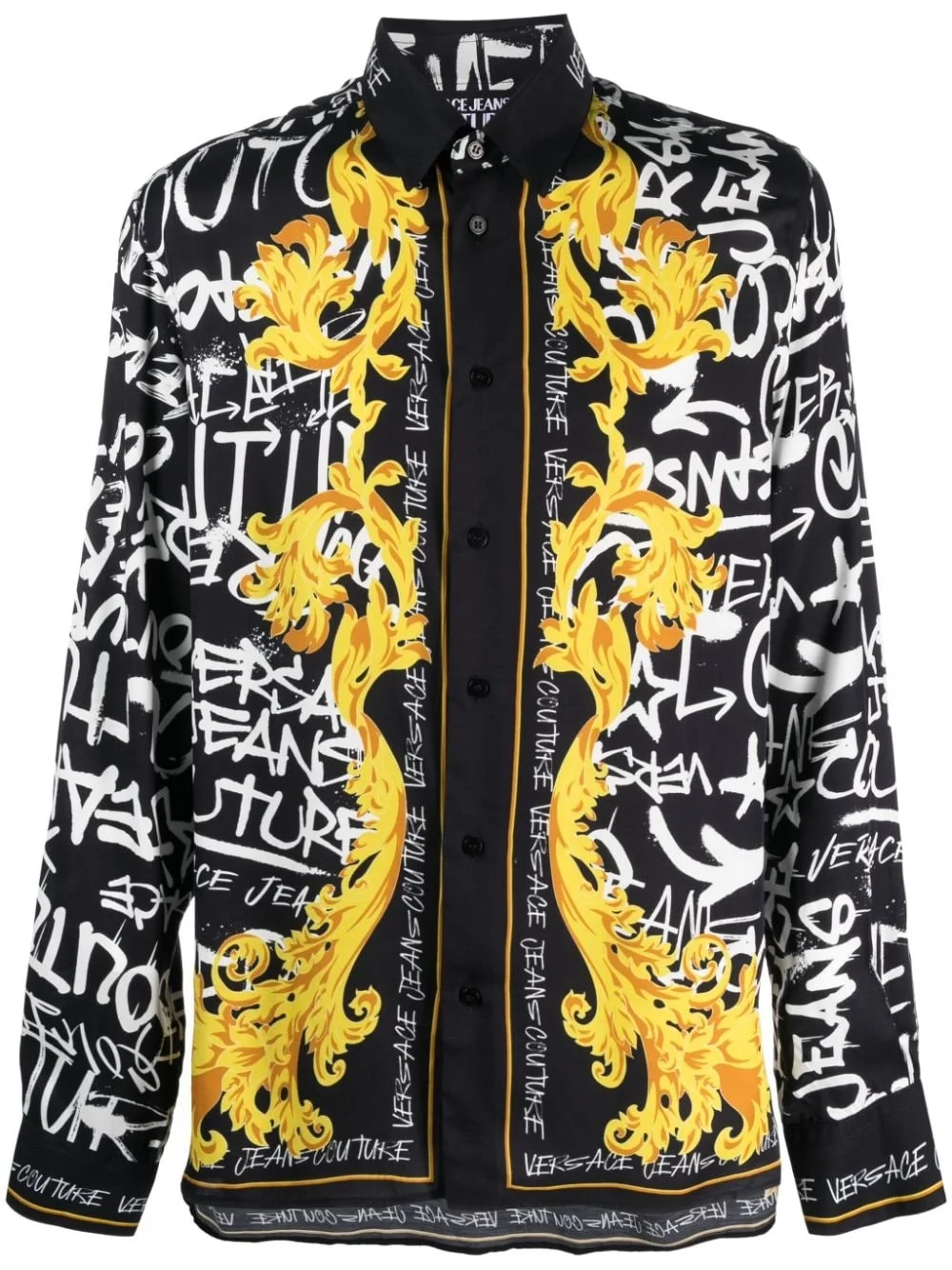 logo-print long-sleeve shirt Highlights - Black/white/gold-tone - All-over logo print - Graffiti print - Classic collar - Front button fastening - Long sleeves - Buttoned cuffs - Straight hem Imported Composition Viscose 100% Washing instructions Dry Clean Only