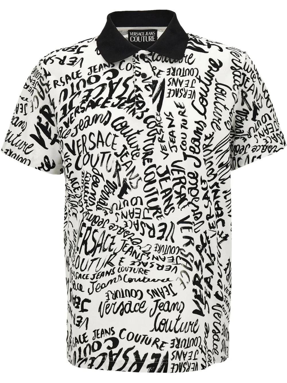 logo-print polo shirt Highlights - White - Short front button fastening - Polo collar - Short sleeves - Straight hem Imported Composition Fabric 100%