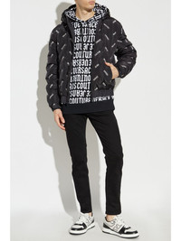logo-print puffer jacket Highlights - Black - Down-feather filling - Padded design - Quilted - Front zip fastening - Drawstring hood - All-over logo print - Long sleeves - Two side zip-fastening pockets - Elasticated cuffs - Elasticated hem Imported Composition Outer: Polyester 100% Lining: Polyester 100%, Down 100%, Feather 100% Washing instructions Read Manufacturer Guidelines