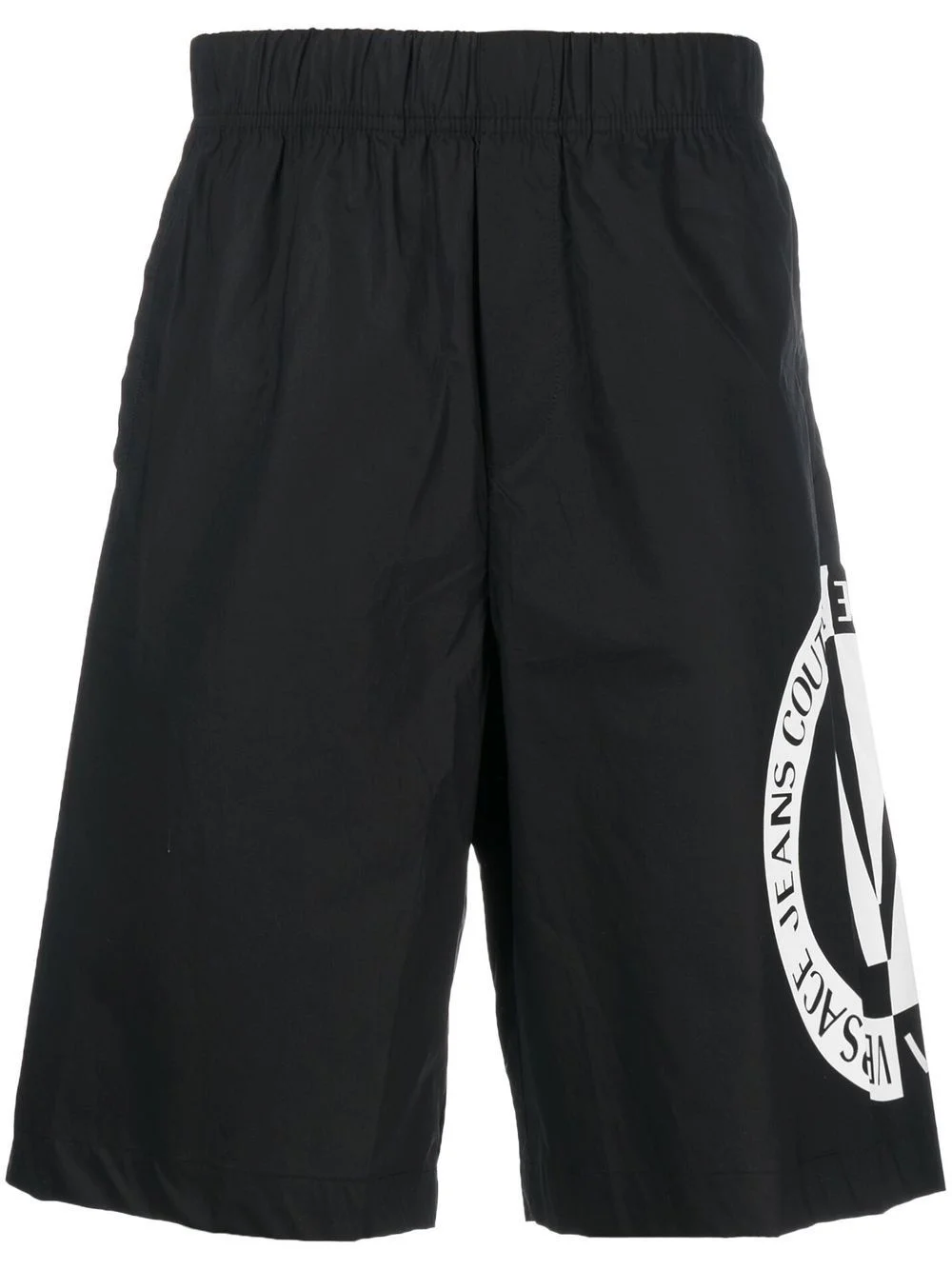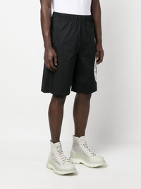 logo-print shorts black/white cotton logo print to the side elasticated waistband knee-length Imported Composition Cotton 100% SIZE & FIT Model measurements Height 6 ft 0 in(1.84 m) Bust/Chest 35.82 in(91 cm) Hips 37 in(94 cm) Waist 28.34 in(72 cm) FittingInformation This piece fits true to size. We recommend you get your regular size Designed for a slim fit at the waist and loose over the leg Made with a mid-weight non-stretch fabric Washing instructions Hand Wash
