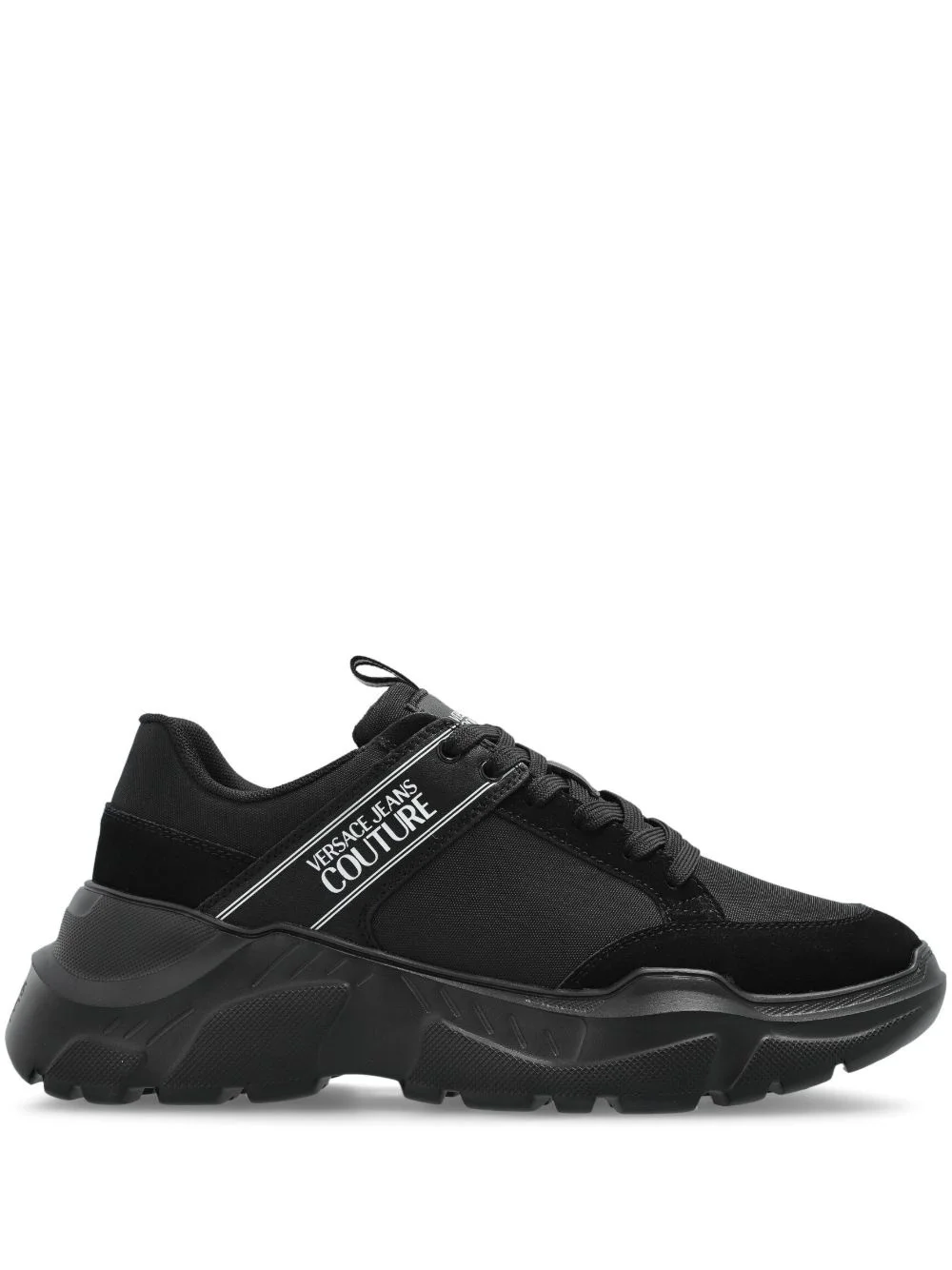 logo-print sneakers Highlights - Black - Front lace-up fastening - Pull-tab at the tongue - Chunky rubber sole - Panelled design Imported Composition Outer: Polyester 55%, Calf Leather 45% Lining: Fabric 100% Sole: Rubber 100%