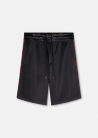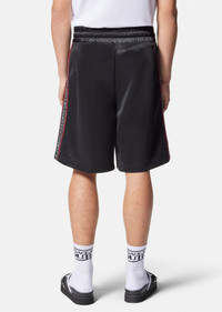These knee-length drawstring sweat shorts feature side logo bands. DETAILS & CARE - Logo - Drawstring waistband - Side pockets - Outer composition 1: 100% Polyester - Outer composition 2: 100% Nylon - Lining: 100% Cotton SIZE & FIT - The model is 6'2" ft tall and wears size M - All sizes fit Italian standards