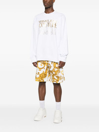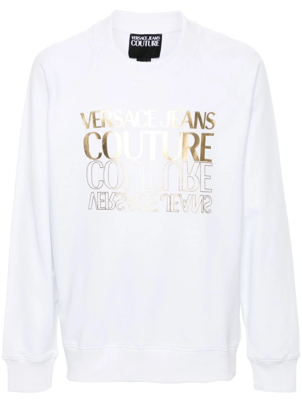 logo-print cotton sweatshirt Highlights - White/gold-tone - Cotton - Jersey texture - Crew neck - Long sleeves - Ribbed cuffs and hem - Logo print at the chest - Metallic effect - Straight hem Imported Composition Cotton 100% SIZE & FIT Model measurements Height 6 ft 2 in(1.88 m) Bust/Chest 35.43 in(90 cm) Hips 35.03 in(89 cm) Waist 27.95 in(71 cm) Measurement CHEST 49.6 in(126 cm) LENGTH 27.16 in(69 cm) FittingInformation Designed for a relaxed fit, this piece allows for comfort and movement when worn Made from a midweight non-stretch fabric, this piece offers minimal elasticity when worn This piece fits true to size – take your usual size Washing instructions Machine Wash