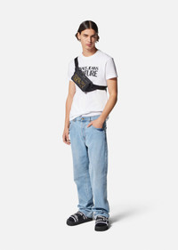 A short-sleeved organic cotton T-shirt featuring a logo print on the front. DETAILS & CARE - Institutional logo - Short sleeves - Crewneck - Outer composition: 100% Cotton - Machine wash in water not exceeding 30° (very mild process) - Do not bleach - Do not tumble dry - Line drying in the shade - Cool iron - Do not dry clean - Professional wet clean (very mild process) - Wash with similar colours - Wash inside out - Iron reverse side only - Do not iron decorations SIZE & FIT - The model is 6'2" ft tall - All sizes fit Italian standards