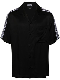 logo-tape short-sleeve shirt Highlights - Black/white - Logo-tape detailing - Camp collar - Front button fastening - Drop shoulder - Short sleeves - Chest patch pocket - Straight hem Imported Composition Viscose 100% SIZE & FIT Model measurements Height 6 ft 2 in(1.87 m) Bust/Chest 38.18 in(97 cm) Hips 36.61 in(93 cm) Waist 29.13 in(74 cm) FittingInformation Designed to be unstructured, offering a loose fit throughout Made from a midweight non-stretch fabric This piece fits true to size – take your usual size