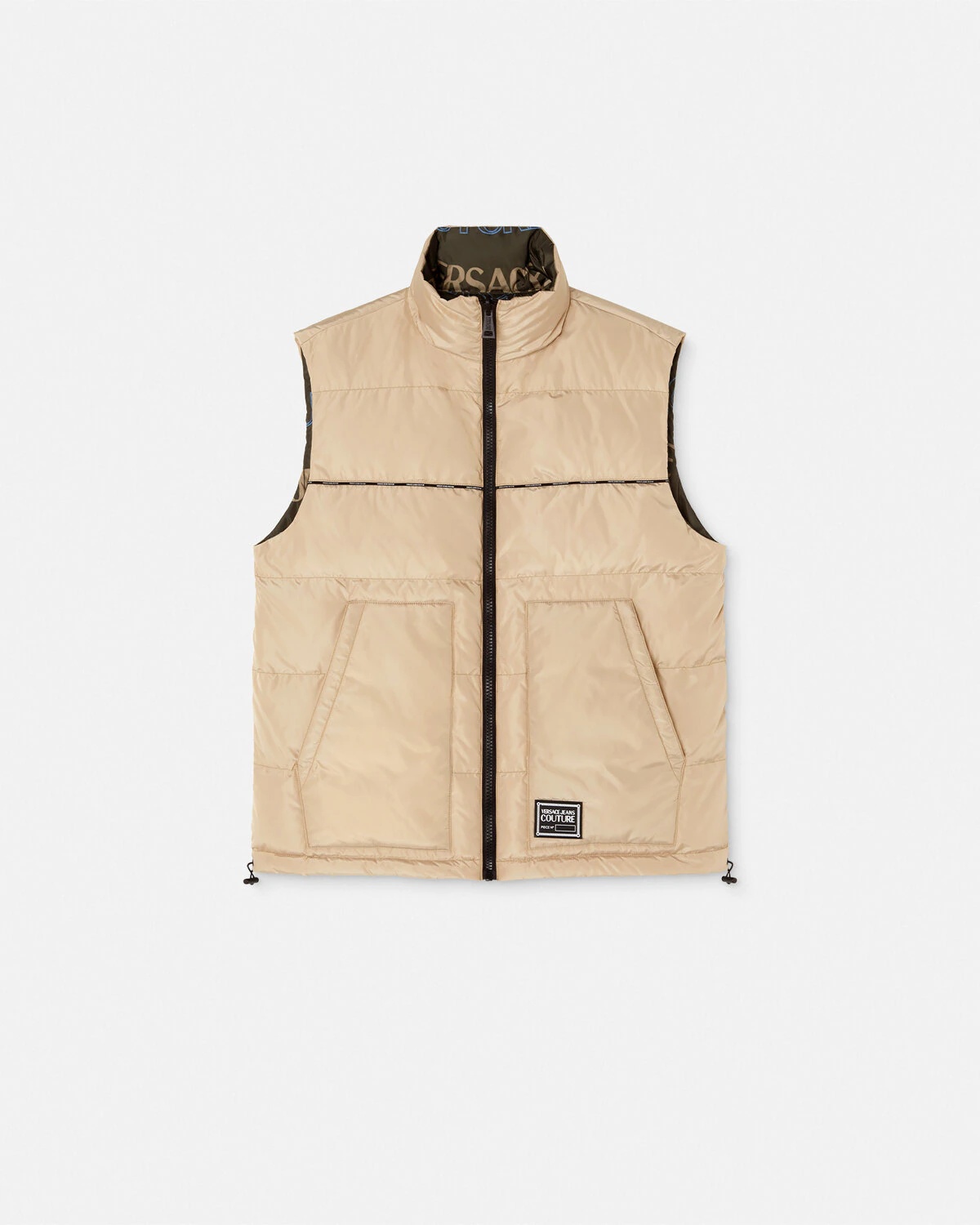 DETAILS This padded puffer vest features a rubber Piece Number logo tag on one side and an all-over Logowave print on the other. A drawstring hem completes the outerwear style. - Logowave print - Piece Number logo - Sleeveless - High neck - Front zip closure - Side pockets - Chest zippered pocket - Drawstring hem - Outer composition: 100% Polyester - Lining: 100% Polyester - Padding: 80% Duck down, 20% Duck feather Item: E76GAU421-ECQD45_E148 SIZE & FIT - The model is 6'3" tall and wears size 48 - All sizes fit Italian standards