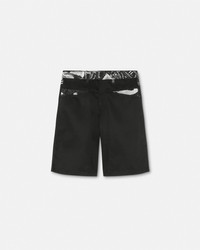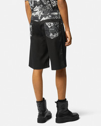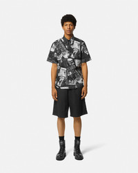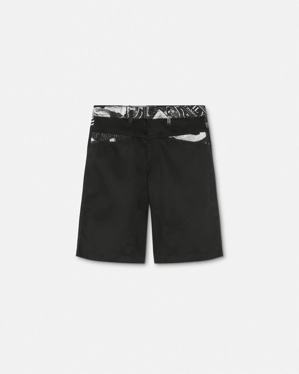 DETAILS Knee-length shorts detailed with a Magazine print along the waistline and pockets and a Piece Number logo label on the back pocket. - Magazine print - Piece Number logo - Belt loops - Side pockets - Front button and zip closure - Back patch pockets - Outer composition 1: 65% Polyester, 35% Cotton - Outer composition 2: 100% Cotton - Lining: 100% Cotton Item: E76GAD110-ENS414_E899 SIZE & FIT - The model is 6'3" tall and wears size 48 - All sizes fit Italian standards