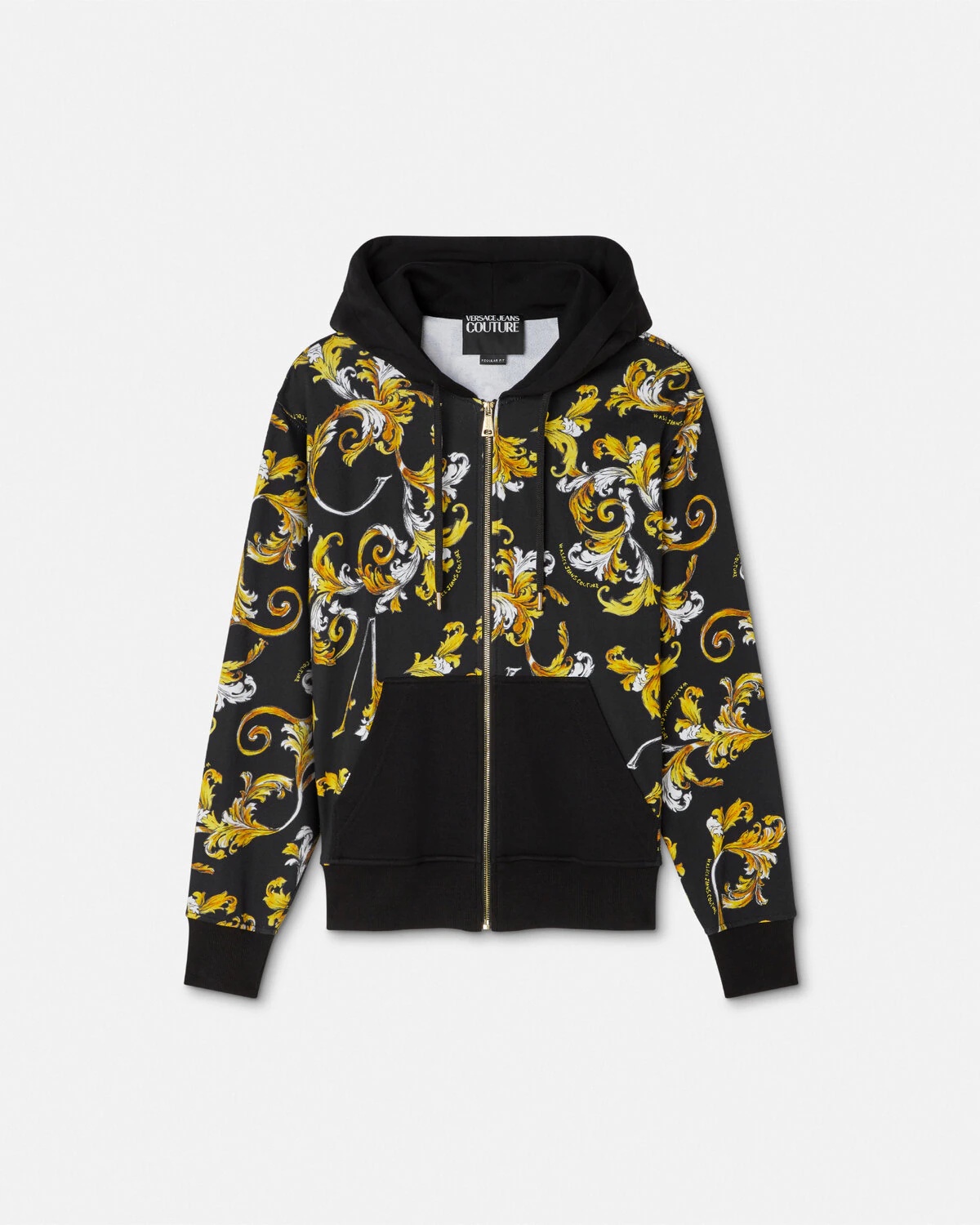 DETAILS This regularfit cotton jersey hooded sweatshirt features an allover Outline Barocco print - Outline Barocco print - Long sleeves - Drawstring hood - Front zip closure - Kangaroo pockets - Ribbed trims - Outer composition 1: 100% Cotton - Outer composition 2: 95% Cotton, 5% Elastane Item: E78GAI3Z1-EFS189_EG89