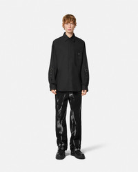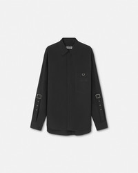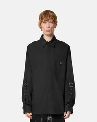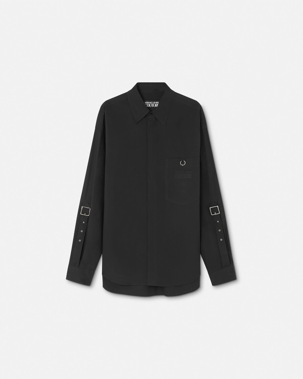 DETAILS Longsleeved cottonpoplin shirt featuring a rubberized gothic logo motif with a piercinglike detail at the chest pocket The design has an adjustable strap detailing at the sleeves and a Chain Couture printed lining at the cuffs - Logo motif - Chain Couture print - Long sleeves - Pointed collar - Front button closure - Chest patch pocket - Buttoned cuffs - Outer composition: 100% Cotton Item: E77GAL218-EN0132_E899 SIZE & FIT - The model is 6'2" tall and wears size 48 IT