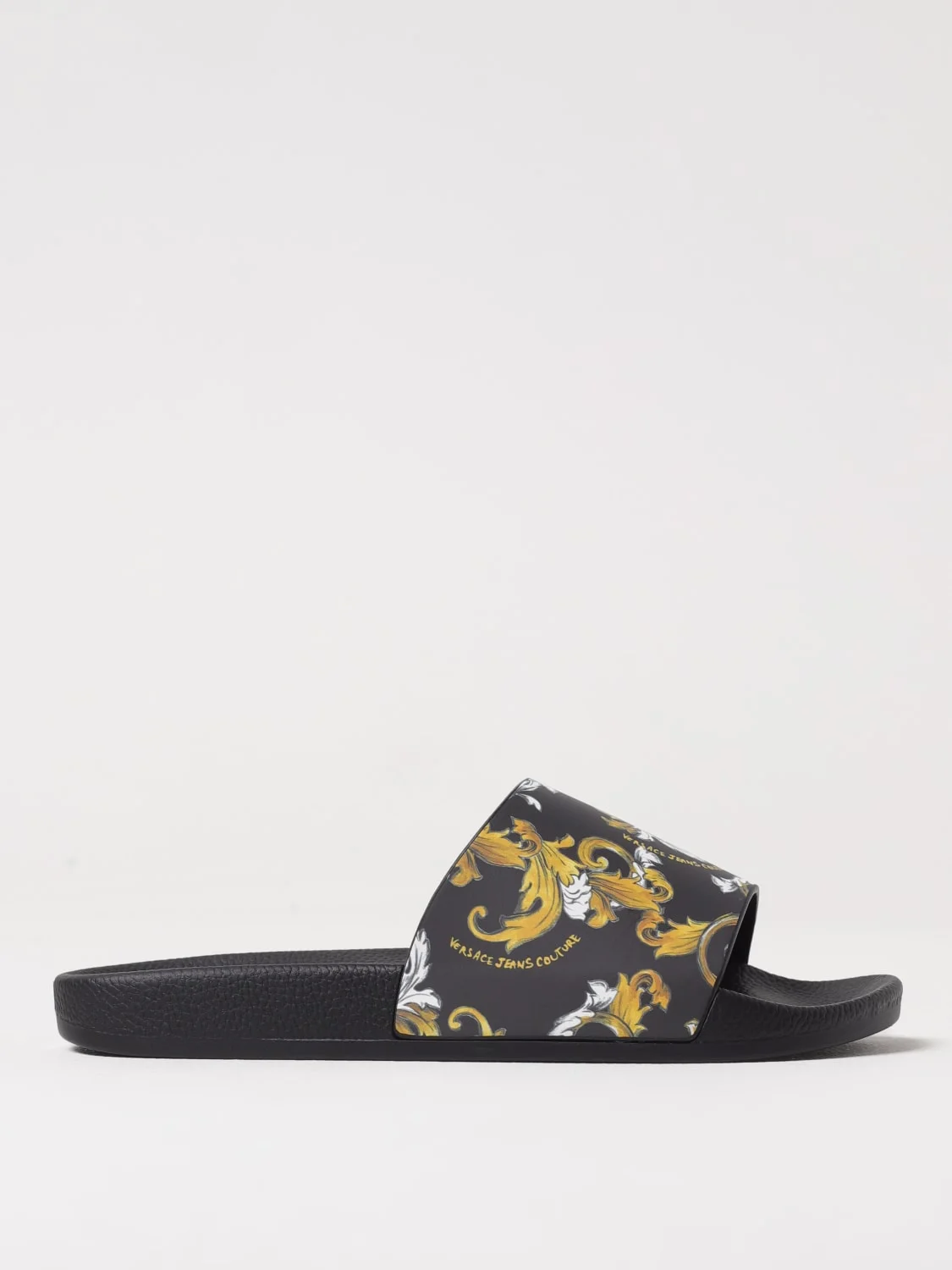 DESCRIPTION - Logo: Contrasting - Toe: Round - Sole: Rubber - Materials: Rubber - Pattern: Baroque Versace DETAILS AND CARE Composition GOMMA SIZE AND FIT Sizes not available Designer code: 78YA3SQ4ZS365 G89 Giglio Code: G53320 Designer: Versace Jeans Couture Collection: Versace Jeans Couture Men Category: Shoes Versace Jeans Couture