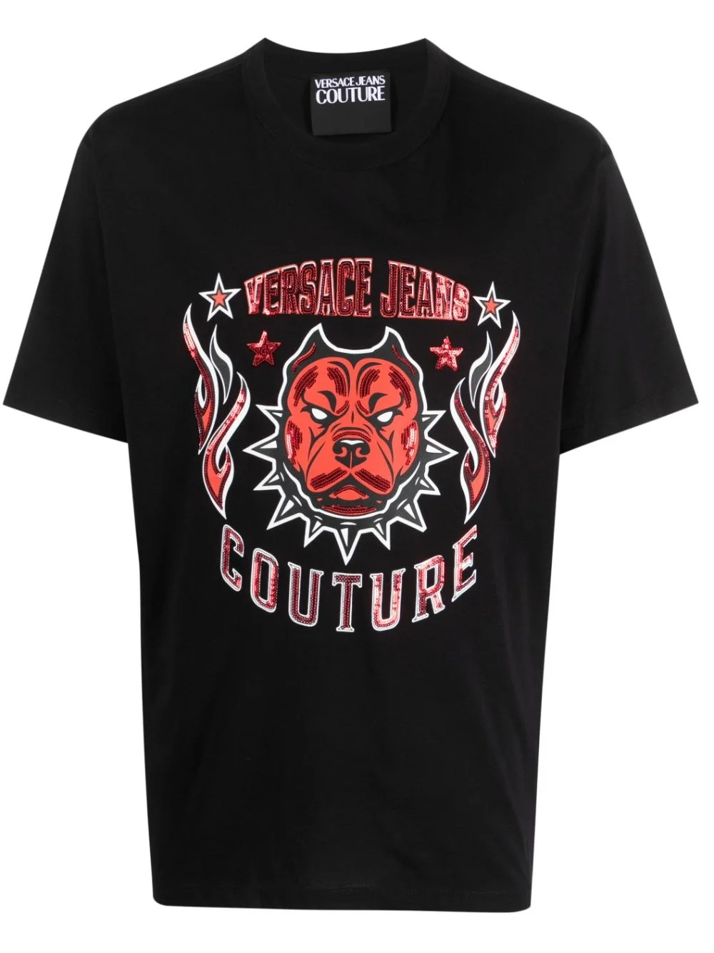 sequin-embellished logo T-shirt Highlights - Black - Cotton - Sequin detailing - Embroidered logo to the front - Round neck - Short sleeves - Straight hem Imported Composition Cotton 100% SIZE & FIT Model measurements Height 6 ft 2 in(1.87 m) Bust/Chest 38.18 in(97 cm) Hips 36.61 in(93 cm) Waist 29.13 in(74 cm) FittingInformation Designed for a relaxed fit, this piece allows for comfort and movement when worn Made from a midweight fabric This piece fits true to size – take your usual size Washing instructions Machine Wash