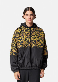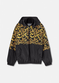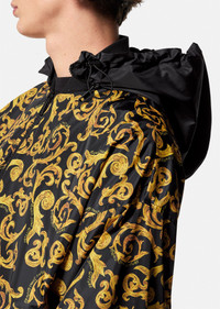 This hooded jacket features a panelled Sketch Couture print and has a half-zipped front, a detachable logo-printed hood, and a breathable mesh lining. DETAILS & CARE - Sketch Couture print - Long sleeves - Detachable drawstring hood - Front zip closure - Side flap pockets - Elasticized waistband and cuffs - Outer composition 1: 100% Polyester - Outer composition 2: 96% Polyester, 4% Elastane - Lining: 100% Polyester - Hand wash gently using mild detergent - Do not bleach - Do not tumble dry - Line drying in the shade - Do not iron - Do not dry clean - Professional wet clean (very mild process) SIZE & FIT - The model is 6'2" ft tall and wears size 48 IT - All sizes fit Italian standards