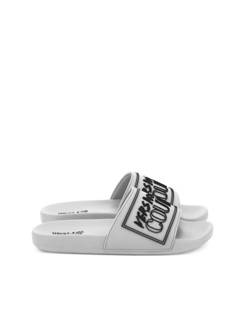 logo-embossed slides Highlights - Cornflower blue - Slip-on style - Branded footbed - Moulded footbed - Round open toe Imported Composition Sole: Rubber 100% Outer: Rubber 100% Lining: Rubber 100%