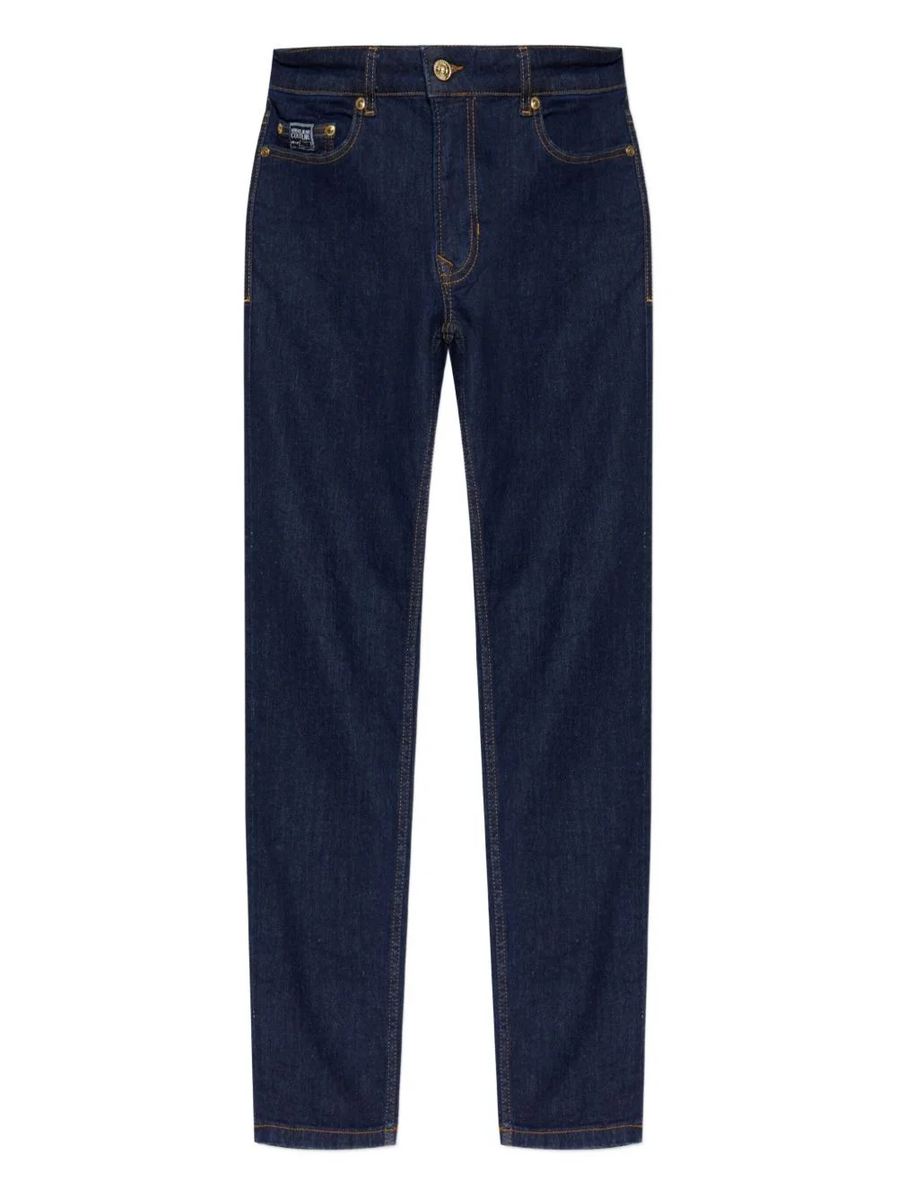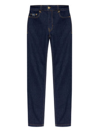 straight-leg jeans Highlights - Dark blue - Front button and zip fastening - Belt loops - Classic five pockets - Rear logo patch Imported Composition Cotton 100% Washing instructions Read Manufacturer Guidelines